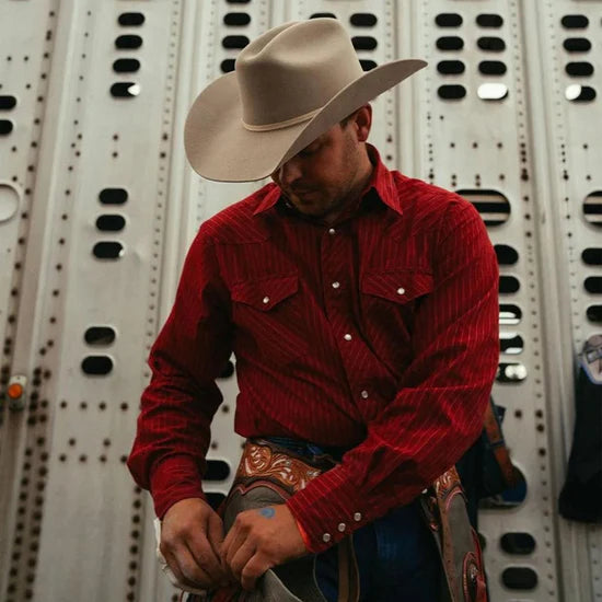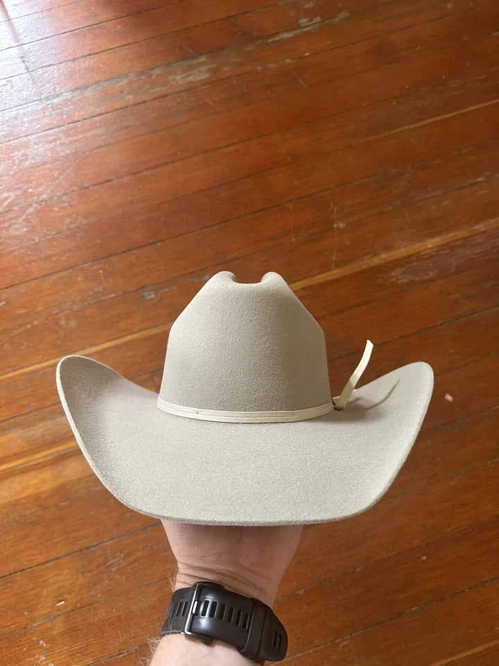 Handcrafted in Texas, this Seager Longhorn Wool Felt Western Hat exemplifies authentic western heritage. Constructed from premium 4X quality wool felt, it features a classic cattleman silhouette with a distinctive 4-inch flared brim and refined raw edge. The hat includes a traditional 2-ply grosgrain ribbon band, signature Seager metal side pin, and genuine smooth leather sweatband for lasting comfort. Finished with Seager-branded satin lining, each hat is meticulously produced in small batches to guarantee superior craftsmanship and timeless style.